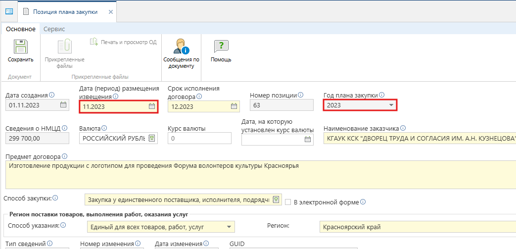 Ошибка возникает, если указанная в Позиции дата размещения извещения меньше даты начала действия Плана закупки. Необходимо скорректировать поле «Дата (период) размещения извещения» в Позиции плана закупки и повторить отправку Плана (Рисунок 1).
